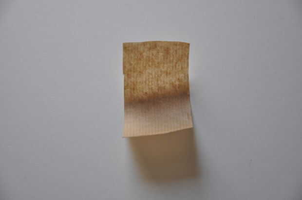 Aplicar el pegamento en él y pegar el pedazo de papel de kraft en la gasa.
