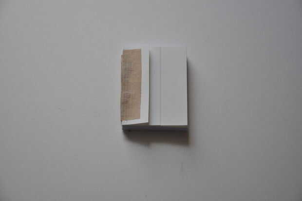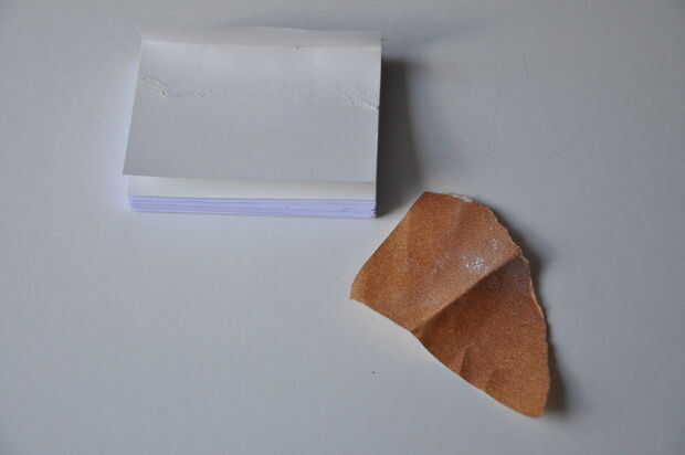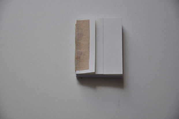 Entonces encontrar un pedazo pequeño de papel Kraft un poco más pequeño que la altura de su libro y un poco más ancha que su trozo de Gasa.