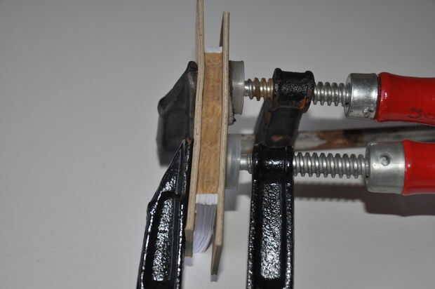Poner todo el libro entre las abrazaderas o colocarlo debajo de una prensa para dejarla secar.