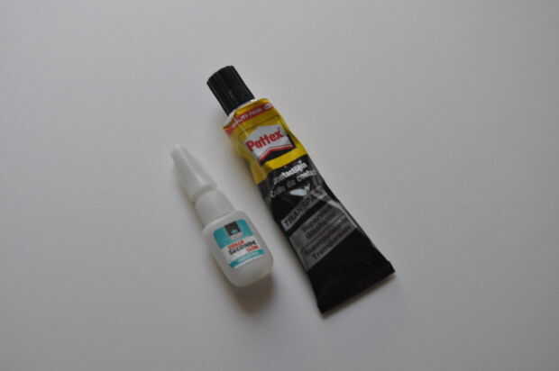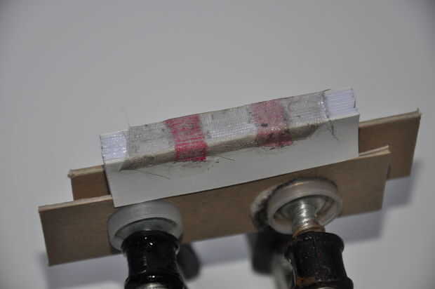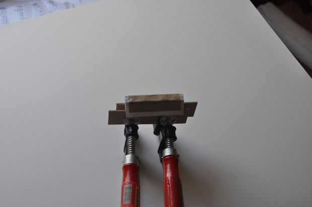 Ahora, todo entre las abrazaderas y permita que la parte superior hacia fuera. Aplicar un montón de pegamento y dejar secar un poco.