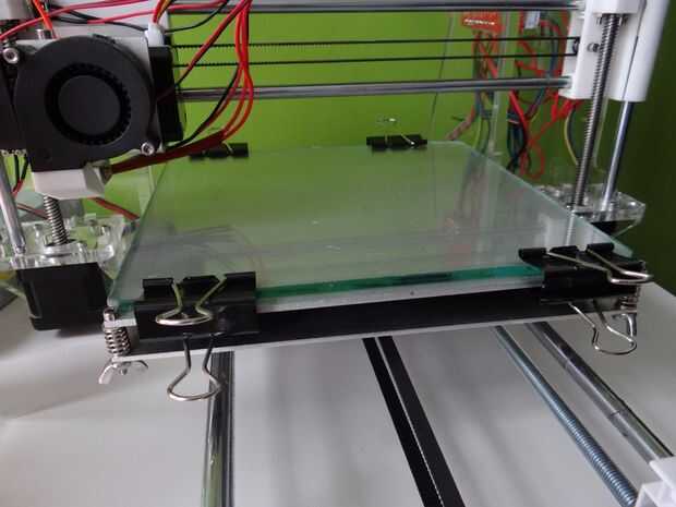 Mesa de vidrio ayuda a quitar sus impresiones de la tabla. Usted no necesita cualquier cinta, pegamento y cualquier otra cosa para imprimir con PLA pero la impresión en vidrio claro con ABS es casi imposible. Así que si quieres imprimir con ABS necesita utilizar cinta de pintor, pegamento o alguna almohadilla especial.
