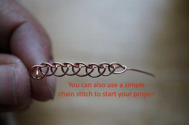 Si usted tiene de punto o ganchillo, usted sabrá esto. Usted puede hacer su fila de arranque con una puntada de cadena. Prácticamente cada cable punto punto que ves comienza en línea en un formato de tubo, que le da es la cara de "fila de tejer, revés fila", en términos de tejer. Esto es cómo el metal le gusta moverse.