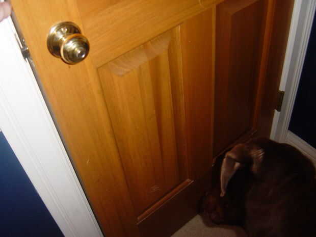 1. ligeramente la cinta una golosina de perro a la puerta que desea cerrar.