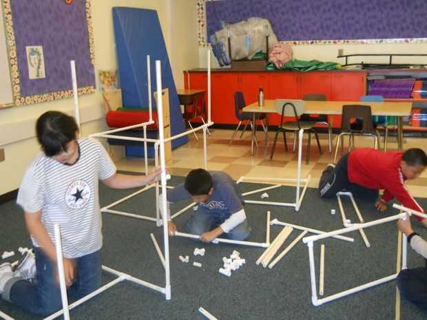 En un ajuste después de la escuela, le enseño a grupos de diez estudiantes de edades 7-12 una vez por semana durante una hora durante diez semanas. Funcionan con un presupuesto de $20 por estudiante para cubrir todos los gastos (incluyendo costos de puesta en marcha) durante diez semanas, con un promedio de $2 por día por estudiante. Las clases se imparten en un salón de usos múltiples con acceso a un amplio patio. Me gusta comenzar cada grupo de clases mediante la introducción de los estudiantes con un proyecto fácil y poco a poco ofrecen más los desafiantes a. Los estudiantes pueden llevar a casa nada que construyen. Si llueve debo compartir la habitación con otra clase.