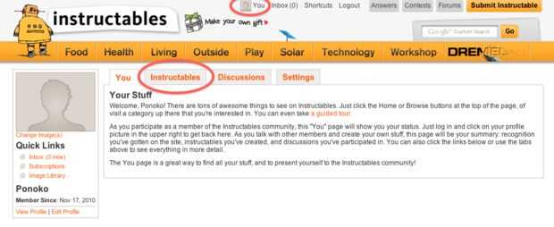 2) haga clic en el "usted" ficha, luego la pestaña "Instructables".