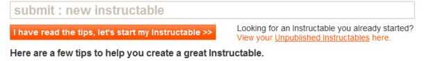4) haga clic en el dicho botón naranja "he leído los consejos, vamos a empezar mi Instructable >>"