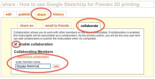 1) haga clic en la pestaña "compartir" y la pestaña de "colaborar" mientras estás en la sección "Editar" de tu Instructable.