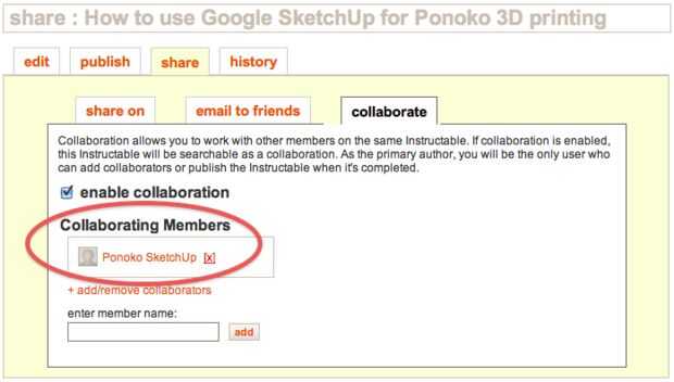 Después de que hayas completado tu Instructable, lo presentar en la competición por compartir con la cuenta de Ponoko SketchUp . Aquí está cómo: