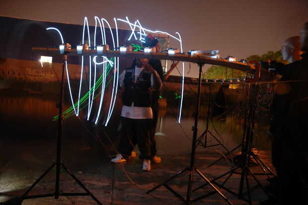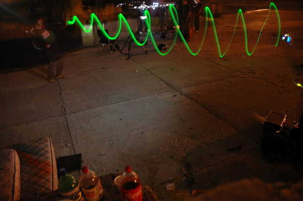 Dibujo luz es sólo una forma de utilizar la matriz de Ghetto. Con el controlador puede desencadenar cada cámara por separado y jugar con lapso de tiempo en 3D, grabar video en vivo desde todos los ángulos, utilizar el flash para capturar la acción de alta velocidad 180...