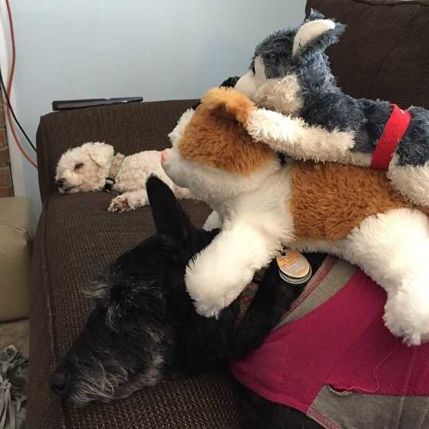 Pila de juguetes sobre ella mientras ella duerme! Su perro se despierta confundido y desorientado.