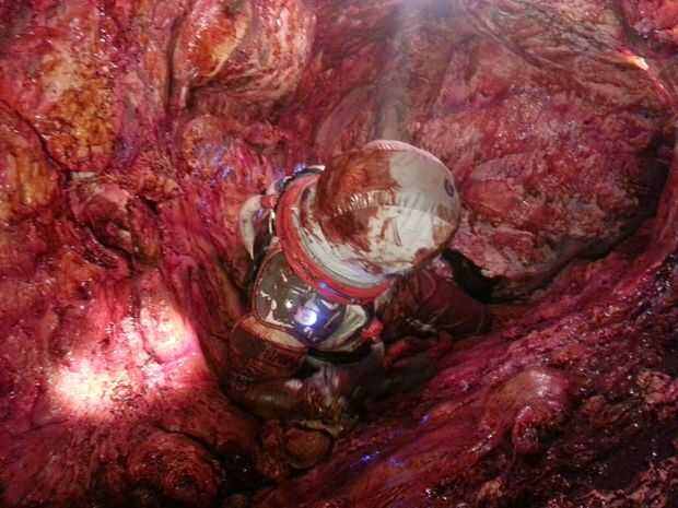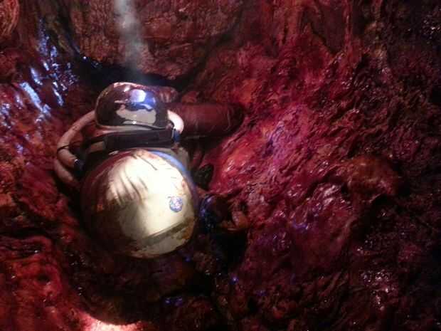 Aquí están algunas fotos que tomé mientras trabajábamos con mi traje, así como algunos fotogramas de la película final. Ian es uno de los tipos más agradables que he conocido y tengo que darle crédito importante para no sólo el traje (3 de ellos eventualmente) pero arrastrándose a través de un intestino enorme tiburón falsos al mismo tiempo.