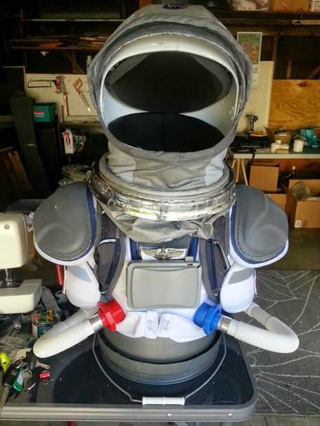 Utilicé las tuberías de agua RV residuos (limpia) y tubo de PVC de acoplamiento que rocíe pintado de rojo y azul para conectar las mangueras a los paquetes de pecho. También utiliza pintura gris para cubrir las espaldas y fijadas las luces rana blanca a ellos mediante abrazaderas de plástico.