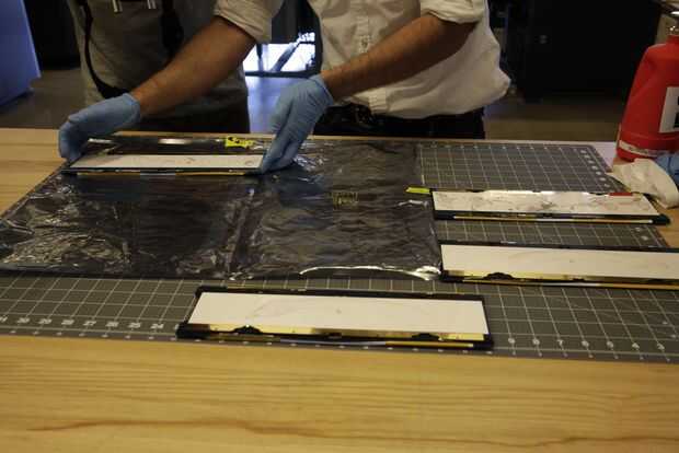 Laboratorios del planeta enviados a través de los paneles laterales de aluminio de varios de sus satélites que se dirigían hacia la línea de producción para poder grabar en el muelle 9. Los paneles se muelen de aluminio y tienen una capa de polvo blanco reflectante para reducir las temperaturas en los satélites.