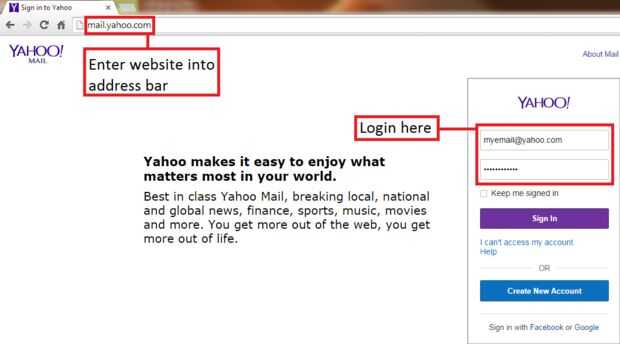 Vaya a https://mail.yahoo.com/. Asegúrese de que el enlace que ha escrito es correcto. Inicio de sesión en su cuenta con el ID de Yahoo correcto o su dirección de correo electrónico y contraseña para que coincida con.