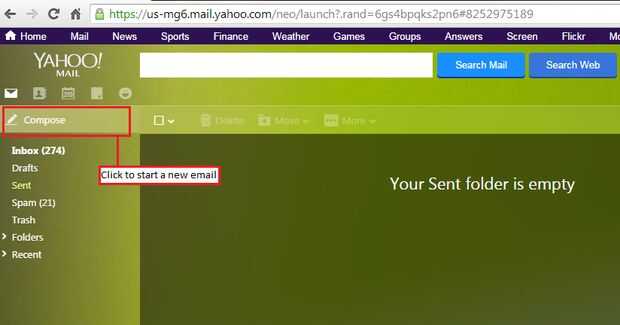 Después de iniciar sesión, verá una interfaz similar del ejemplo de su cuenta de correo electrónico. Haga clic en componer para comenzar a crear un correo electrónico.