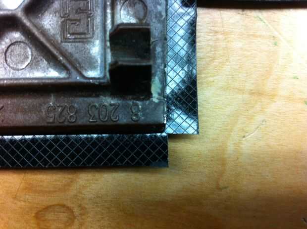 Envuelva alrededor de contornos, calor el vinilo un poco hasta que quede suave, y luego trabajar con una tarjeta de plástico, asegurándose de eliminar cualquier aire burbujas que recibe y evitar cualquier arruga. Una vez que haya alcanzado el borde de la moldura, puede recortar el vinilo a su tamaño, dejando aproximadamente un cuarto de pulgada para envolver alrededor de la parte posterior.