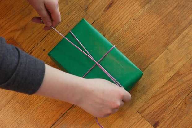 Antes de atar el arco, gire los caja noventa grados y descansar la cuerda en los lados. Voltee la caja (todavía con la cadena) y atar un arco en la parte inferior del presente para acabar con.