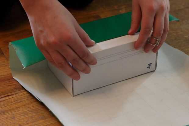 Descansar uno de los lados doblados en la parte inferior de la caja. Opcional: Cinta adhesiva del lado doblado en la parte inferior del presente.