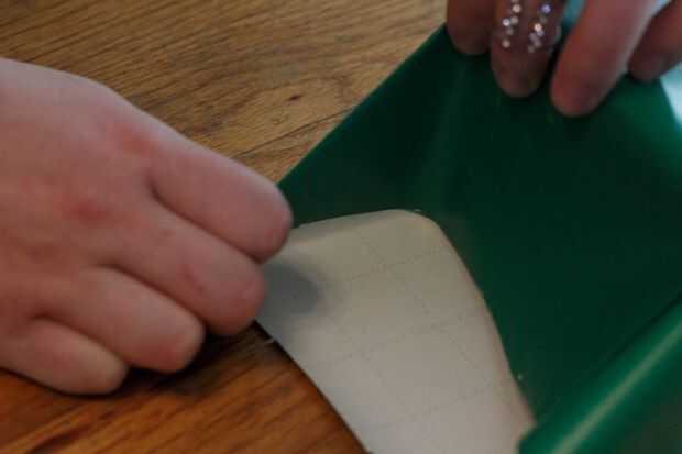 Hacer un triangulo poniendo la parte superior del papel sobrante hasta el suelo. Esto forma un borde de forma de triángulo limpio.