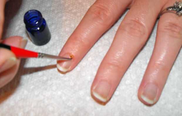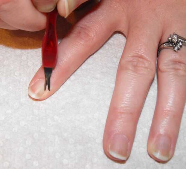 Una vez que haya quitado cualquier Polaco viejo, necesita quitar cualquier cutículas que crecen hacia abajo sobre la uña. Para ello utilizo aceite esencial de árbol de té con el pincel para suavizar la cutícula (puede utilizar aceite de oliva si no tienes árbol del té) luego, utilice el palillo de madera de abedul a empujar hacia atrás la cutícula, la afeitadora/cortadora para quitar cualquier desagradable cutículas y las tijeras pequeñas para colgar clavos.