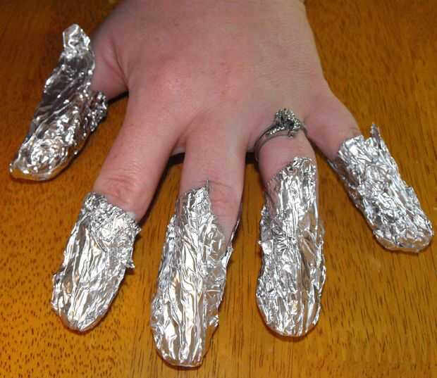 Hacer una mano a la vez, porque, bueno, es difícil tratar de hacer cualquier cosa con los 10 dedos de papel de aluminio envuelto.
