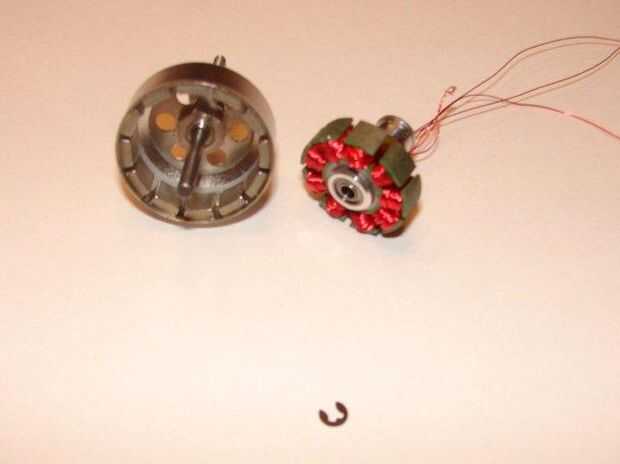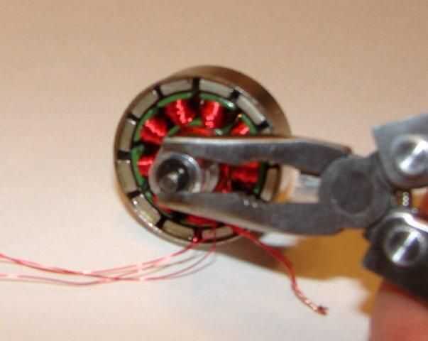 Desarmar el motor que desea modificar es fácil. Empezar por retirar la "C" en forma de arandela en la parte posterior del motor. Pinzas deben ser capaces de manipular él apagado. Luego tire de la parte externa del motor del estator (la parte que tiene las bobinas). Desenrolle el cable en el motor y asegúrese de contar cuantas vueltas son en uno de los polos para que sepa qué cambiar el número a. Algunas veces el alambre se pega, así que con cuidado cortar.