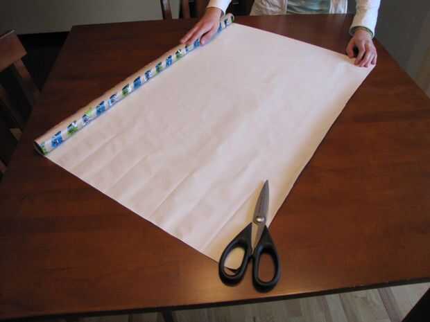 Desenrolle la parte del papel sobre la mesa como se muestra en la imagen.