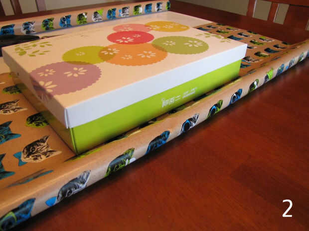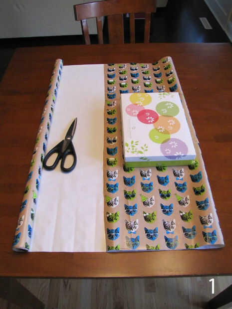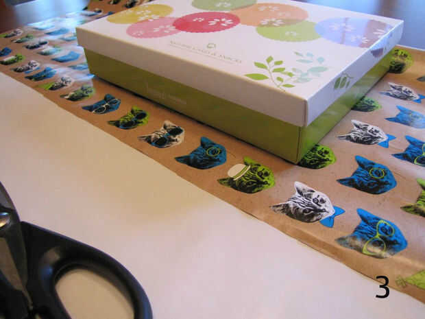 Coloque la caja en la parte superior del papel como se muestra en la imagen para ver si tienes suficiente papel para cubrir todos los lados de la caja.