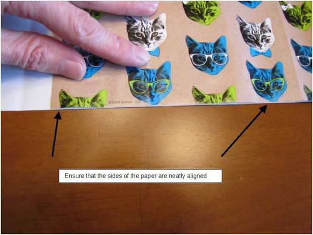 Antes de cortar el papel de asegurar que los lados del papel están perfectamente alineados como se muestra en la imagen.
