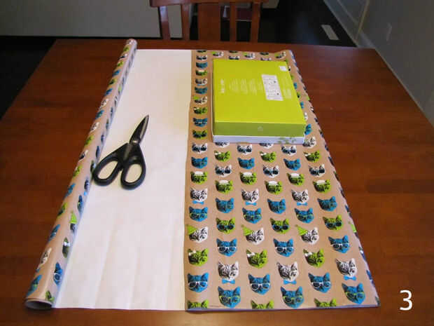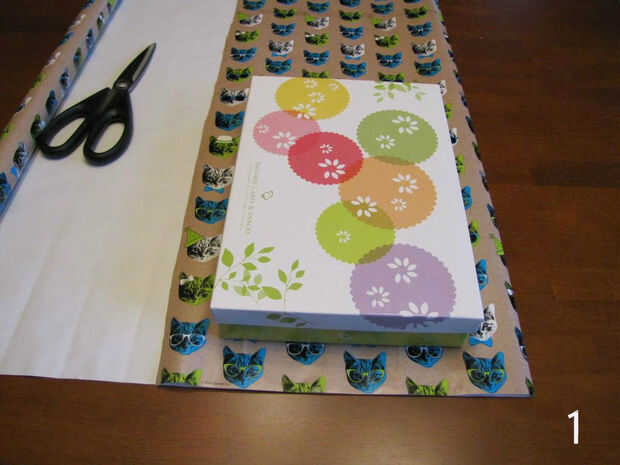 Coloque la caja en la parte superior del papel como se muestra en el cuadro y el cuadro del rodillo en cada una de sus cuatro lados y a su vez, con el fin de estimar la cantidad de papel necesaria para cubrir completamente los cuatro lados de la caja.