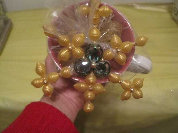 1. tuve la imagen de estilo copo de nieve que quería hacer en mi mente, así empecé a pegar las piezas de pasta antiguo uno al otro con la ayuda de una pistola de pegamento caliente.