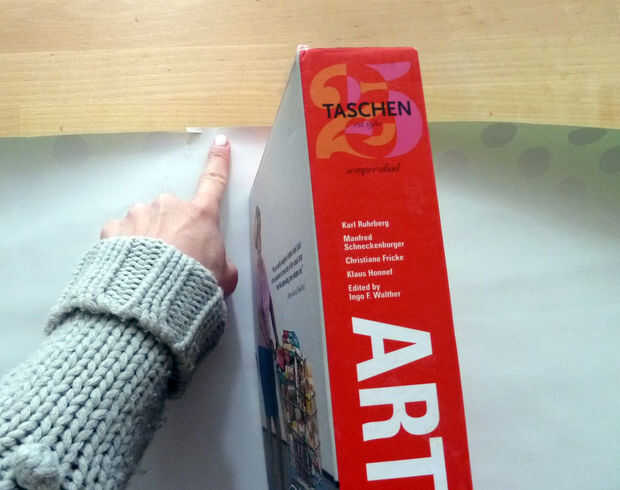 Deslice sobre hasta que alcanza el borde del papel hasta el lado de la caja (ver foto 2). Esto es lo ancho usted cortará su papel. Corte una muesca para marcarlo.