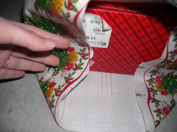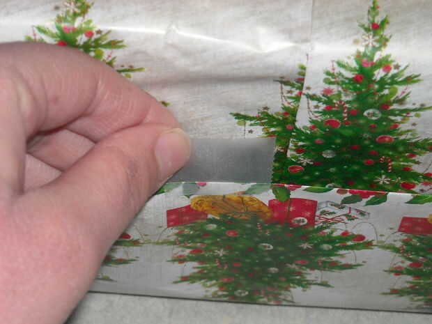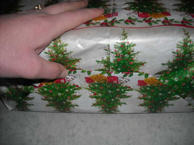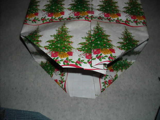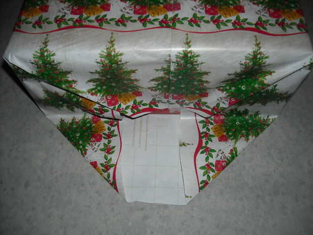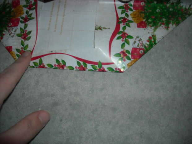 Plegar la solapa superior. En la solapa inferior, pliegue el borde sobre (como hizo en el paso antes de esto). Luego doble hacia arriba y asegúrela con cinta.
