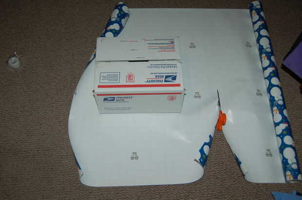 Haz tu regalo y colocar en cualquier tipo de papel de embalaje.  Corte de aproximadamente 5 pulgadas de su regalo.