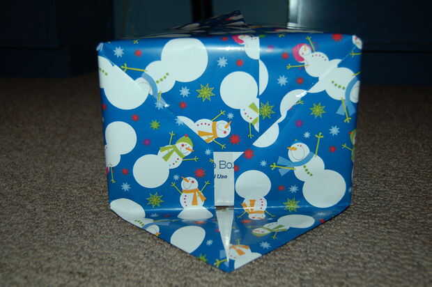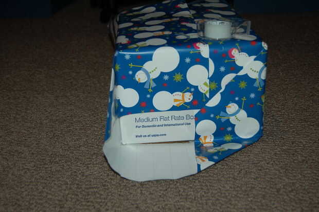 presente grande mi padre este año fue un telescopio computarizado. Vino en un gran caja marrón con logotipos en los laterales y logo impreso cinta sellado de la parte superior. Porque era demasiado grande para envolver completamente, sólo cubrí todos