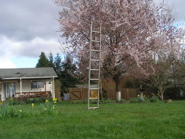 Recoger moras con una escalera de mano