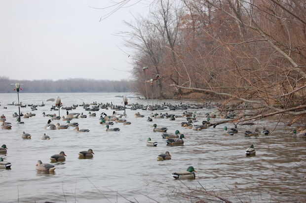 Pequeñas extensiones de señuelos especialmente pueden beneficiarse de un señuelo de ala giratoria, que se muestra arriba. El movimiento adicional simula más patos en su lugar y el movimiento atrae a multitudes en su propagación.