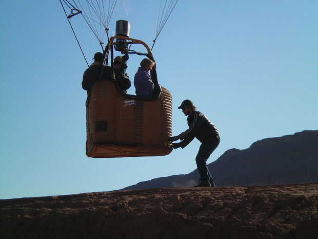 -Nunca se pare en frente (Sotavento) de la cesta de globo móvil mientras el balón está aterrizando o paseando el balón