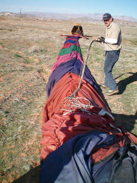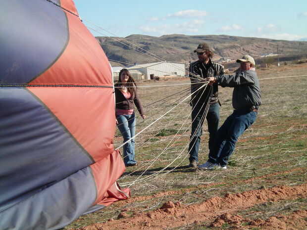 -Otros miembros de la tripulación apretón el aire fuera de la envolvente, o "leche" de la globo