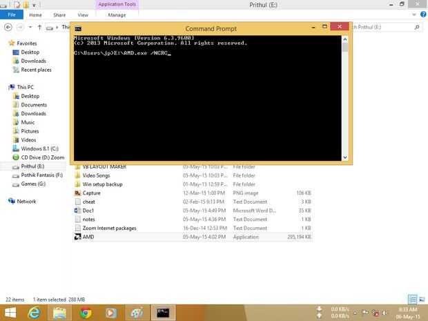 Ir a Inicio y escribir CMD que pulsar intro. Se abrirá una ventana negra. Ahora vaya a la carpeta donde está el archivo .exe. Si es en un disco o un pendrive luego copiarlo al disco duro. Ahora arrastre el archivo hasta la ventana negra o en la ventana CMD y verá que la dirección del archivo .exe se ha copiado en la ventana de cmd. Ahora en el CMD ventana Presione espacio y escribir /NCRC y pulse Entrar. Verá que se ha abierto la ventana de instalación. A continuación, puede instalar el software.