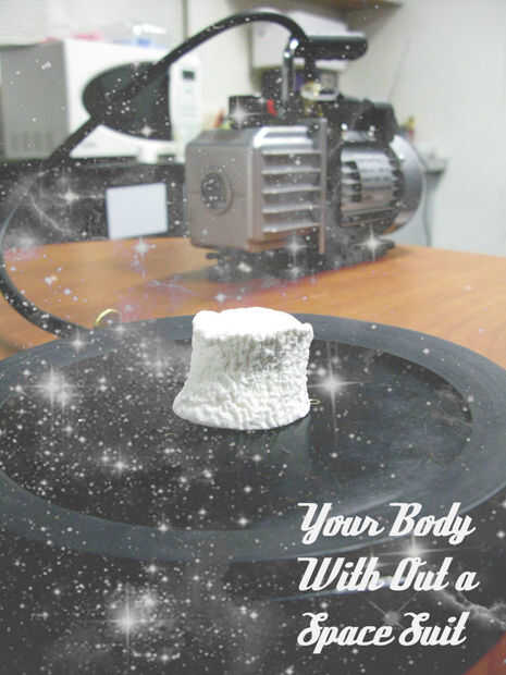 Vivir en el espacio es muy diferente a vivir en la tierra. Para empezar, tienes que llevar todo el aire junto con usted... Se utilizará una cámara de vacío para simular el vacío del espacio y sus efectos sobre nuestros cuerpos.