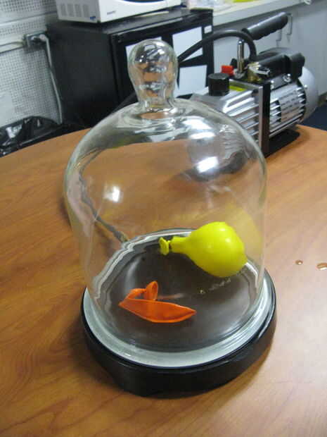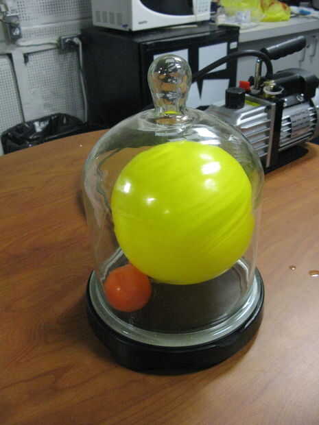 - Cubrir con el tarro y reducir la presión. Deben ampliar ambos globos con el globo inflado cada vez mucho más grande y posiblemente hacer estallar.