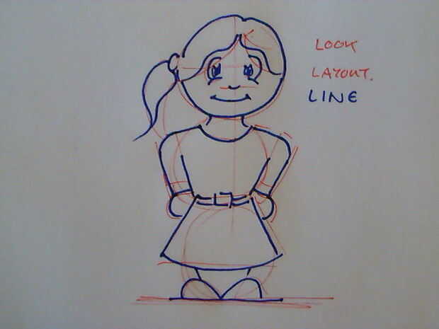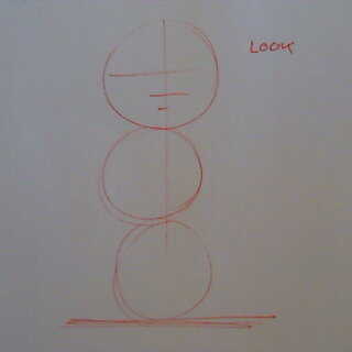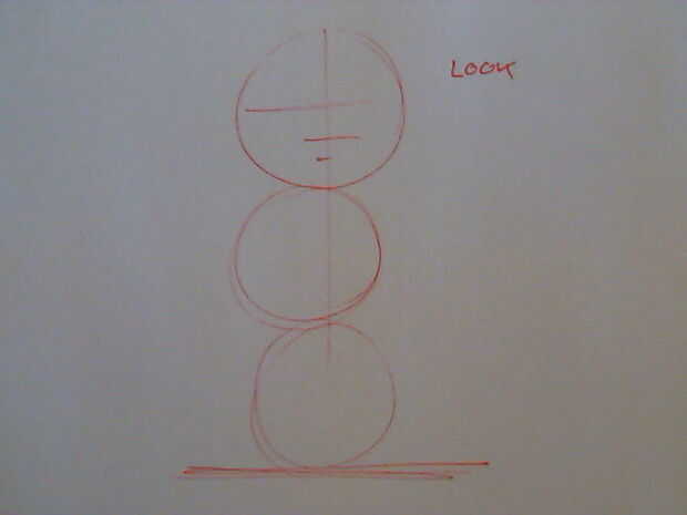 Imagen 1 - Look - lo primero que tenemos que esbozar ligeramente es tres círculos uno encima de otro (o uno debajo del otro) en una línea vertical. Esta es nuestra fase de mirada donde nos bosquejar hacia fuera de las proporciones generales de nuestro personaje. Casi todos nuestros personajes sigan estas proporciones básicas (lecciones más adelante explorarán otras proporciones).