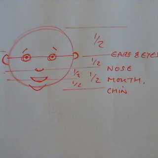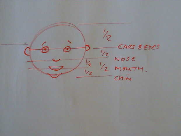 Imagen 3 - Nota que la cara es en la mitad inferior de la cabeza - ojos y oídos en la boca de la línea - nariz a medio camino entre la línea del ojo y la barbilla - de medio a medio camino otra vez.