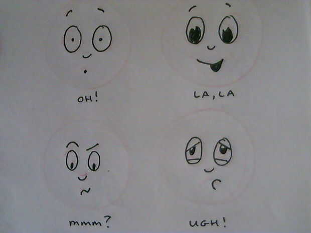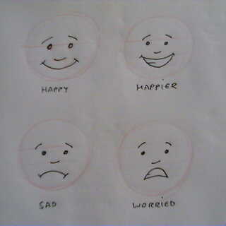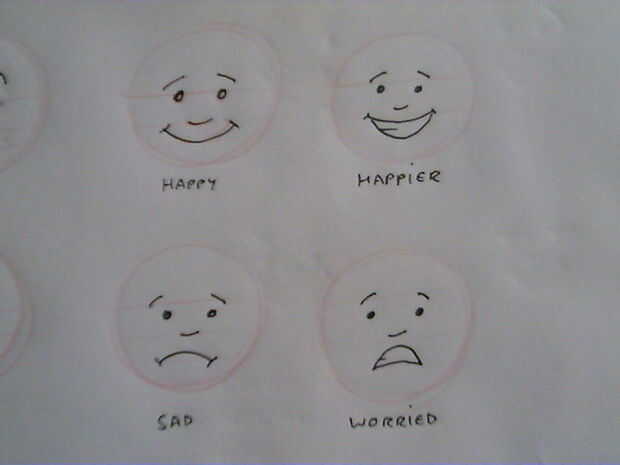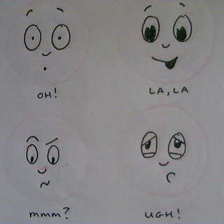 Dibujar un par de círculos de práctica con los ojos, nariz, boca mantuvo el mismo. Ahora en cada uno experimente con las cejas. Hacer lo mismo otra vez con la boca.