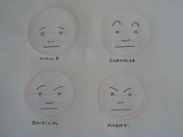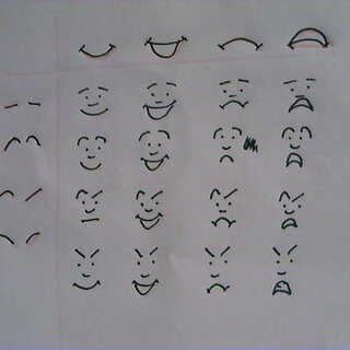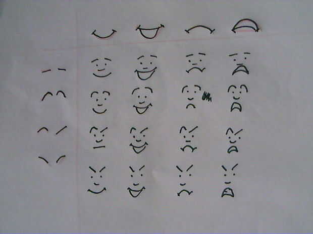 De 2 partes de la cara con cuatro posiciones tenemos dieciséis expresiones ya.