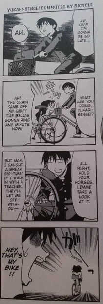 La alternativa a una franja de silencio depende del ingenio. Los paneles deben intentar progresar una historia a una línea del sacador, como nuestra historia de ejemplo en la explicación de la estructura. Esto no significa expresiones locas están, de hecho, pueden ayudar a mostrar el efecto de la broma en los personajes. Sólo significa que puede no confiar en ellos solos. Una manera fácil de crear estos es iniciar desde la línea de golpe y pensar cómo se pudo llegar a esa conclusión. Usted puede incluso elaborar situaciones en tu vida! Te tomamos otro ejemplo de Azumanga Dioh para entender. (Tanto como nos gusta nuestras propia tiras, Azuma tiene un montón de profesionales, publicados y legibles ejemplos disponibles).