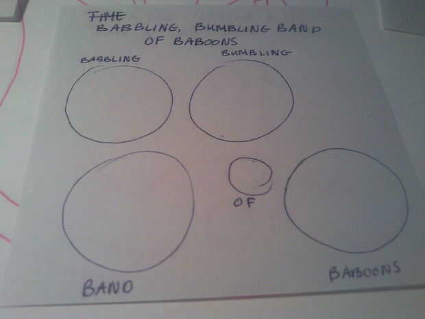 Busco frases que me gustan, por ejemplo de películas o series que me encanta. Aquí, elegí para una cita de Harry Potter y el cáliz de fuego: "Babbling, torpe banda de babuinos"