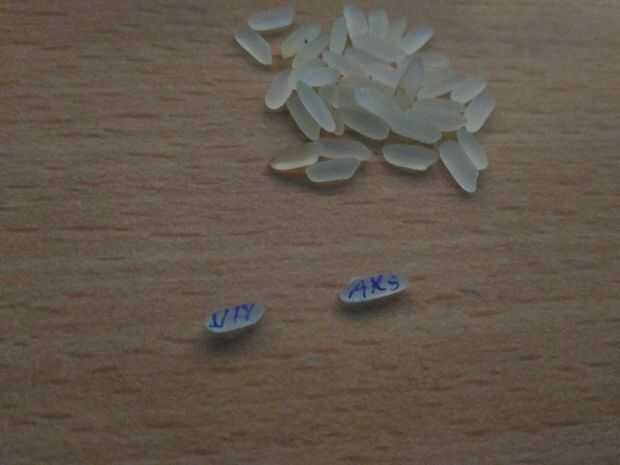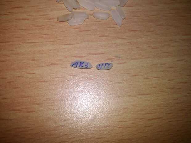 Había escrito AKS & DIY en el arroz, se puede escribir cualquier cosa que cabe en el arroz.