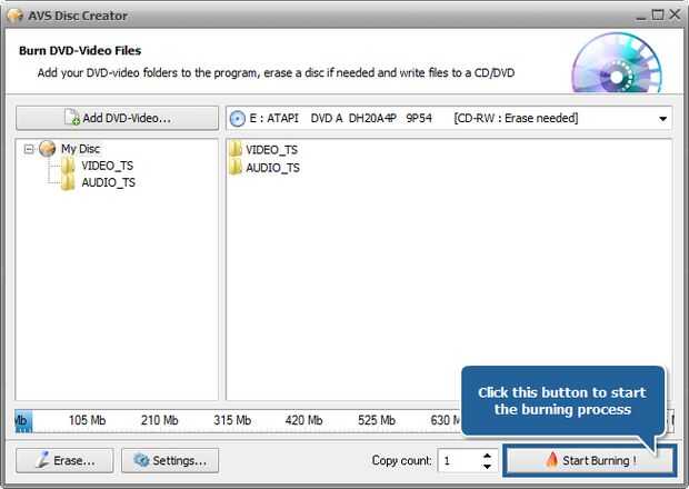 Nota: antes de inicio te quema también puede especificar la cantidad de copias del disco, que desea crear, usando las flechas en el campo de cuenta copia.